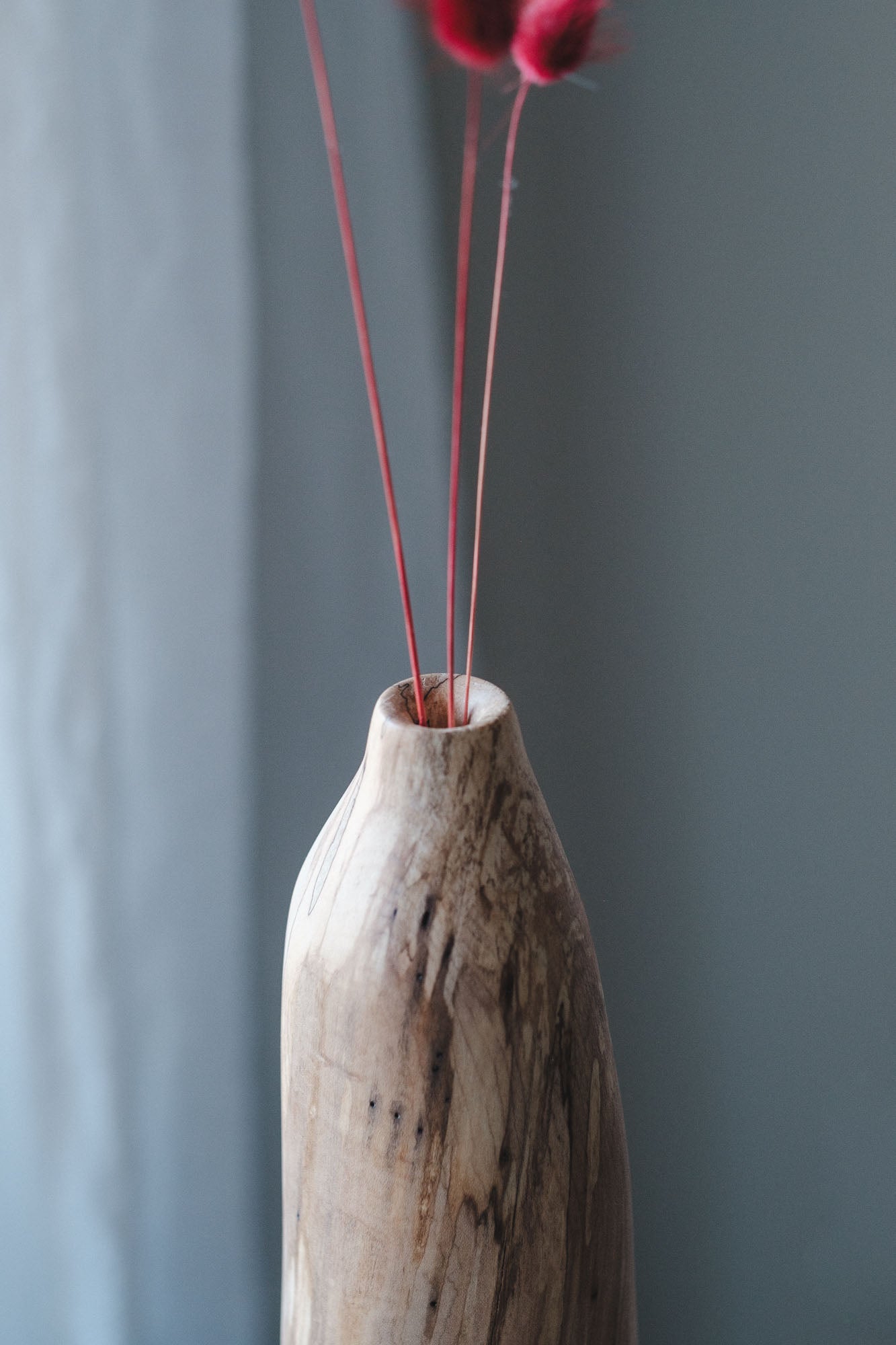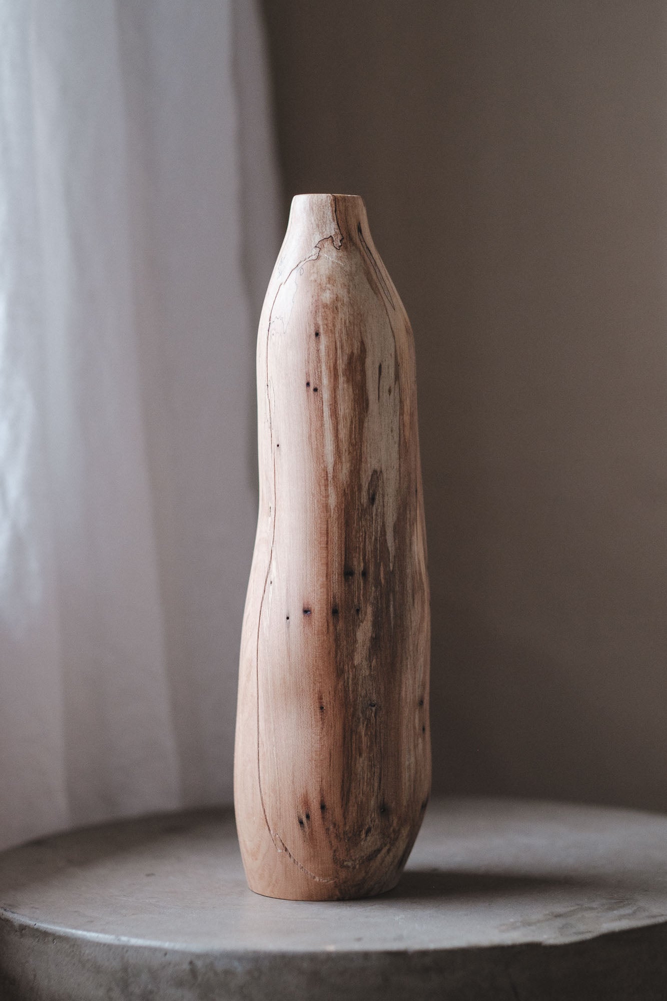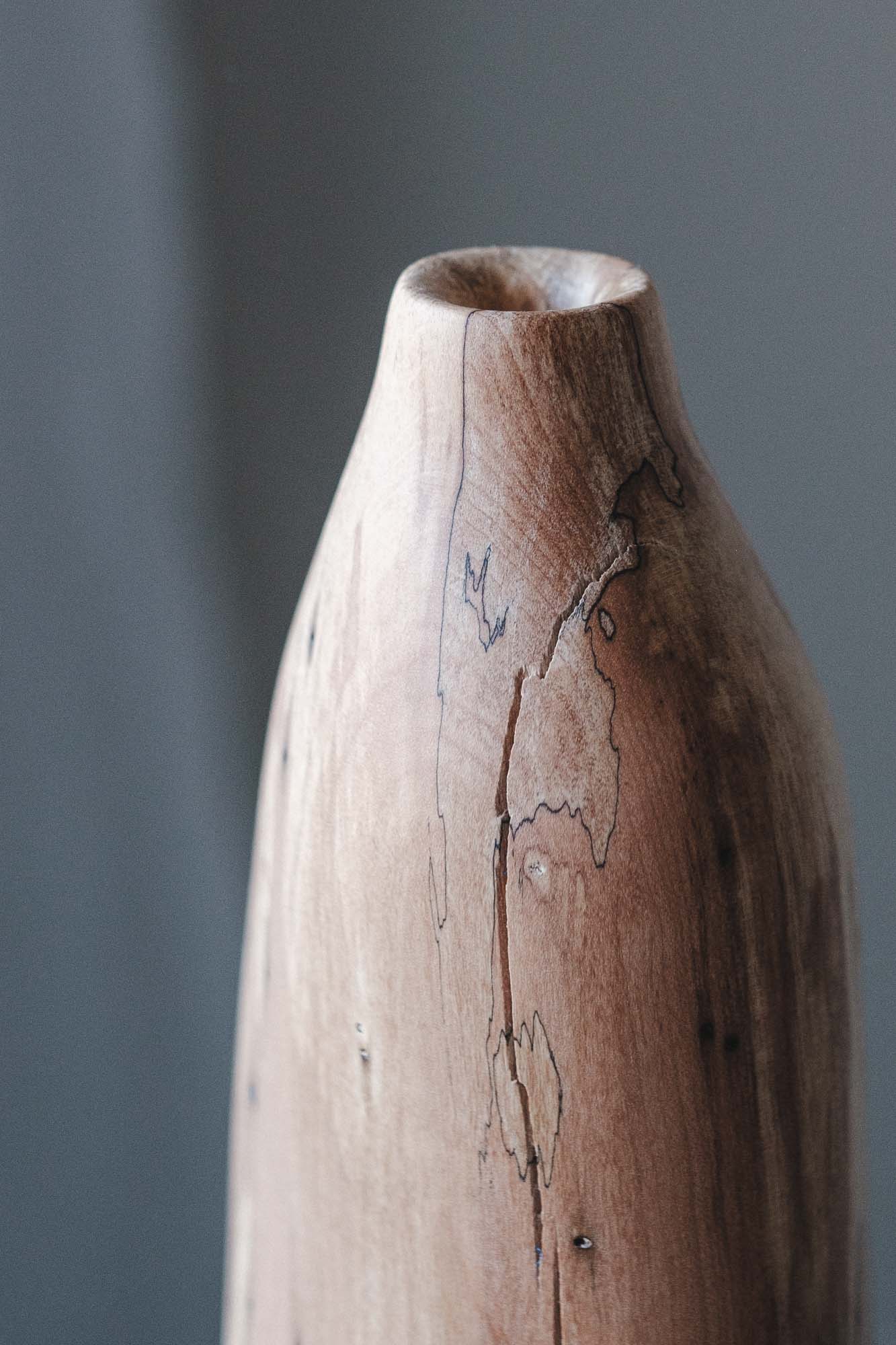 A piece of wood given a second chance. Destined for the firewood pile, this spalted maple has so much character, varied colouration and natural cracking where it has settled into itself. Turned on the lathe then organically shaped - an ode to wabisabi and always finding the beauty.